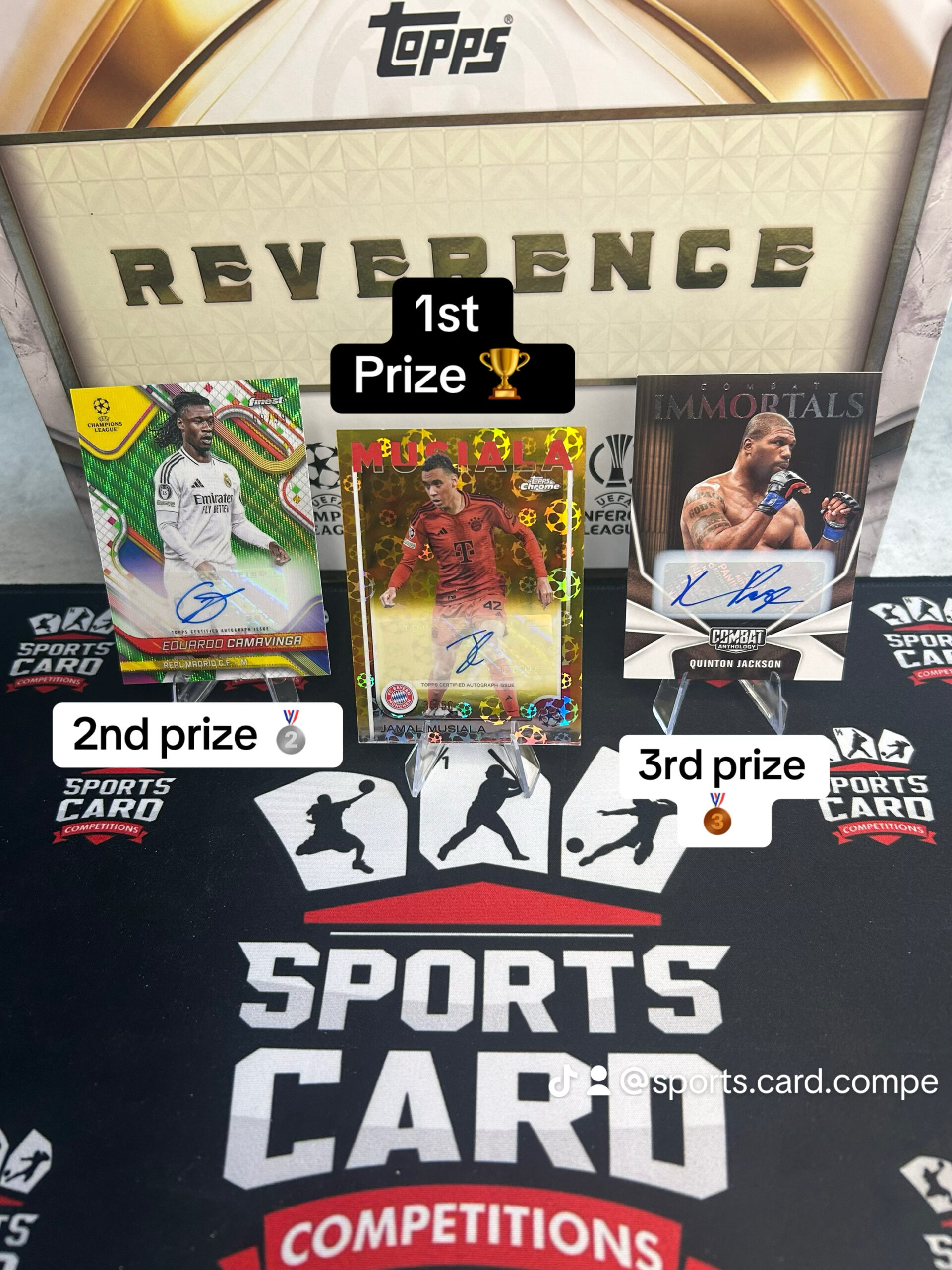 Free competition with 3 winners, first prize musiala /50 auto card. 2nd prize Camavinga /99 auto card, 3rd prize Rampage jackson auto card